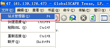 2.运行CuteFTP,点文件菜单中的“站占管理器”,或者直接按F4,调出站点管理器。